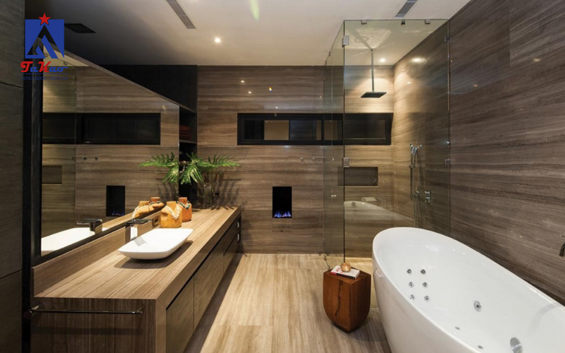 Phòng vệ sinh là nơi có độ ẩm cao, vì vậy khả năng chống thấm nước của gạch là yếu tố cực kỳ quan trọng. Gạch chống thấm giúp ngăn ngừa sự xâm nhập của nước vào bề mặt, từ đó giảm nguy cơ ẩm mốc và kéo dài tuổi thọ của gạch.