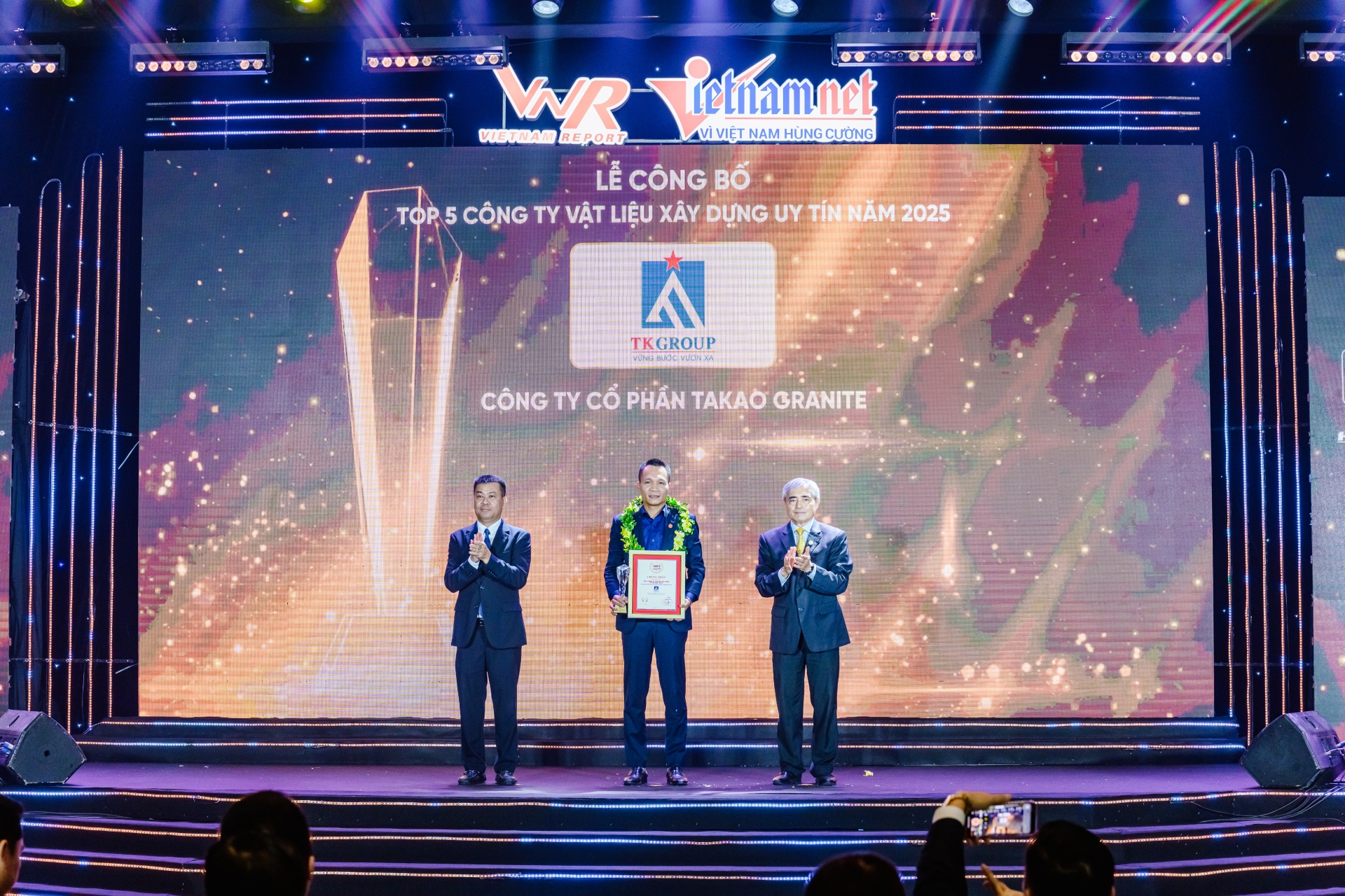 Ông Vũ Hồng Duy - Phó Tổng Giám đốc Công ty Cổ phần Takao nhận giải thưởng Top 5 Công ty Vật liệu xây dựng uy tín năm 2025